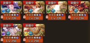 神石編成で運用しているのは、火と闇のみ。火は完凸。闇は210レベル……。他はマグナだあ!