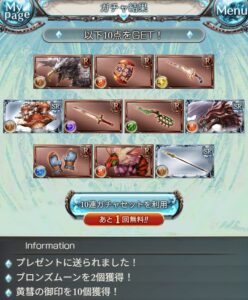 他の報酬は年末に温存する予定なので、残りのチャンスはコラボ限定10連ガチャチケットの残り3枚。