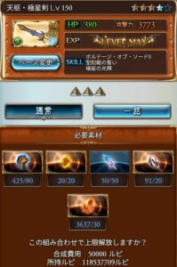 そもそも1本につき極星の晶核80個必要なので、おいそれとは中々作れません/(^o^)\
