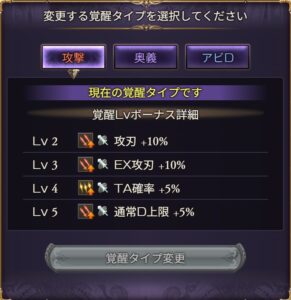 周回的なことを考えれば攻撃覚醒が良さそうですが、現状の高難易度を考えるとアビダメ覚醒と奥義覚醒の方が良さそう。