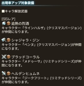 ピックアップからは外れていますが、12月1回目のグランデフェスでクリスマスバージョン第2弾と一緒にすり抜けを狙うという選択肢もありますし・・・