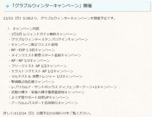 毎年12月の20日過ぎころから開催される騎空士たち待望のキャンペーン。