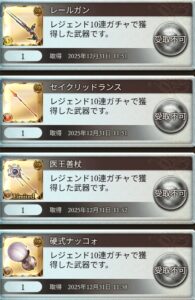 昨年最後のガチャと思って手持ち全部ブッパしてガチャ更新と同時に回しましたが結果はピックアップ0。