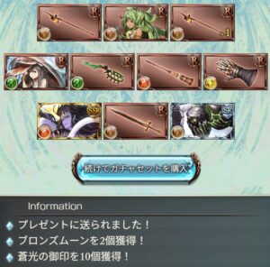 本日の無料ガチャは10連でした。