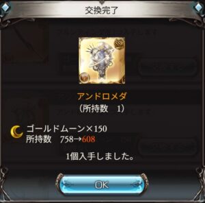 ( ゚д゚)アンドロメダ入手 おめでとうございますヽ(`▽´)/ 残りの金月でルミナス武器4種交換できますね!(悪魔の囁き