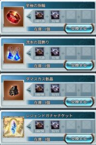 指輪、耳輪、ダマスカス骸晶、単発ガチャチケットに加えてしっかり確保しておきましょう。