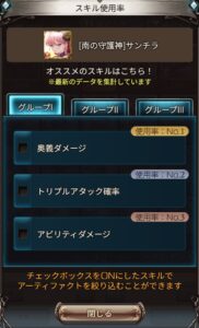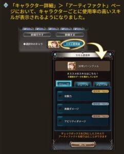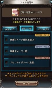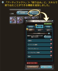 アーティファクトのスキルが絞り込めるようになっています。