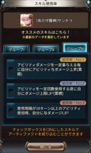 更にスキルの選択は条件毎に3つずつ選ぶことが出来るので、お目当てのアーティファクトを持っているかどうかも分かりやすくなっています。