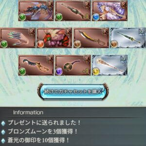 ドデカゴンルーレットの方はエリクシールハーフでしたが、30連が引ければ上々。
