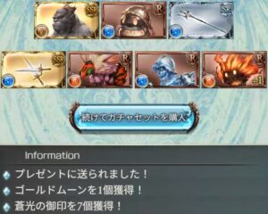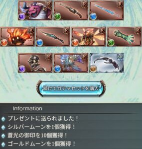 2本目の絡繰刀・雲隠は引けませんでしたが、SSR6個でゴールドムーン5個のケージ3個。