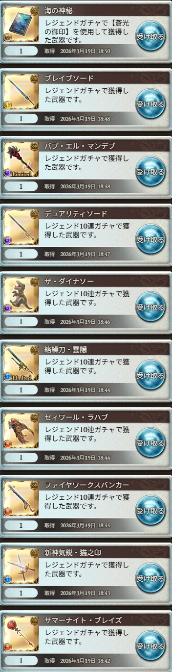 190連分の下駄が履けたので、明日の分も合わせれば100連未満で天井到達……ありがてえ。
