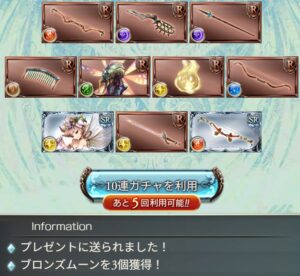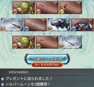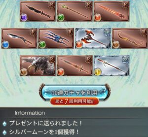 SSR率がフェスと同様の6%ですが、引けるのはクラシックガチャ3に入っているものと同様のラインナップなので注意が必要。