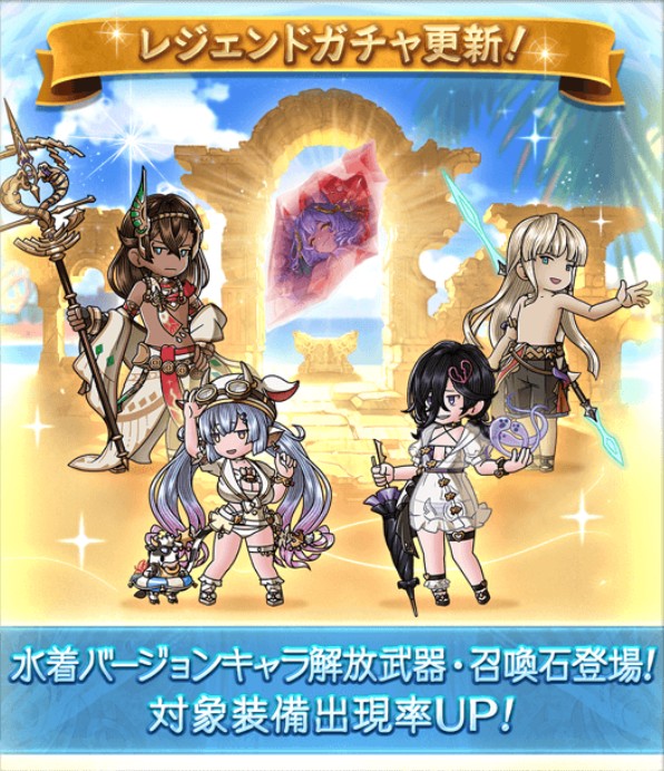 【グランブルーファンタジー】本日19:00にレジェンドガチャを更新!水着バージョンキャラ解放武器・召喚石登場! #グラブル pic.twitter.com/7qf6wLQBon