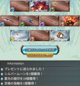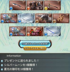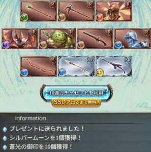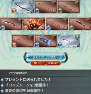 ということで、昨日の分の無料10連ルーレットは外れてしまいましたが、まだ今日の分の無料10連ルーレットがあります。
