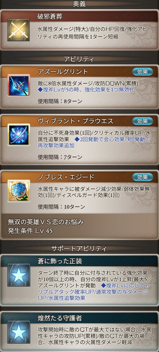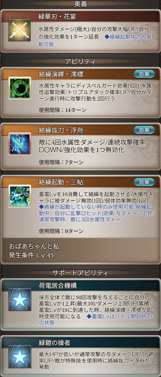 昨年9月に実装されたリミキャラで、現状の水属性奥義編成の中核をなす存在です。