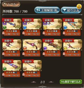 まず使用頻度が高い極星剣と煌神杖を最終上限解放させ、12周年で実装されたランサー・オリジンに斧、槍の装備数が関わってきていたので急遽天伐槍を最終上限解放させた感じです。