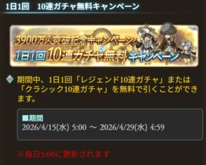 唐突な3900万キャンペーン、唐突な無料10連ガチャ、