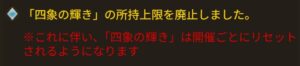 これまでは20万と1回のクエスト超過分までしか稼げなかった四象の輝きの上限が廃止。