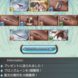 どちらも性能悪くないとはいえ、安定のスルー。リミゼタ槍は欲しいですが、天井してまで取りにいくほどではないので、無料10連でぽろっとに期待です。
