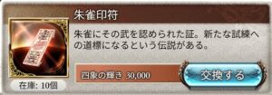 四象の輝きによる必要交換数は1枚交換する毎に5000ずつ増えていき